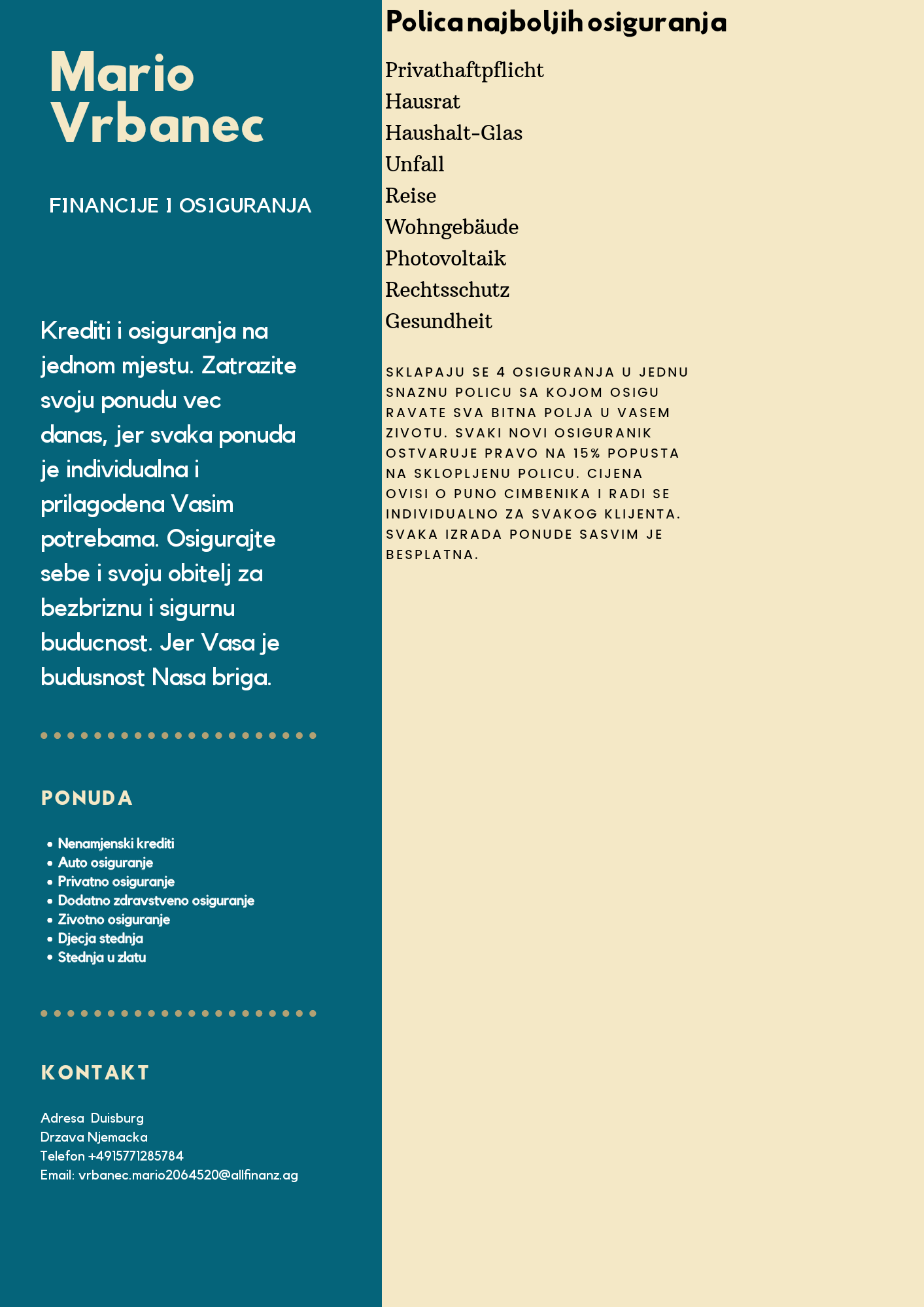 Ukoliko ste zainteresirani postoji li povoljnije osiguranje za vaš auto, javite se allianz agenturi juro cubela... Registracija auta u njemačkoj je veoma jednostavna i prilično brzo se može završit.